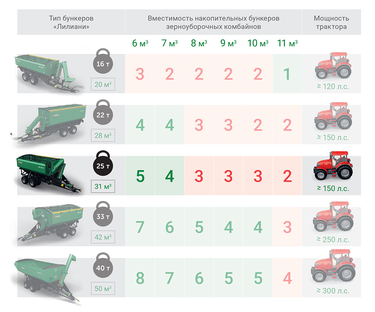 Хит продаж. Данная модель наилучшим образом сбалансирована в соотношении цена/качество и много лет является флагманом наших продаж. Грузоподъемность в 25 тонн совпадает с востребованной грузоподъемностью грузовиков-зерновозов и хорошо соотносится с кратностью емкости приемных бункеров большинства популярных комбайнов. Относится к негабаритной серии. Производительность выгрузки - 450/600 т/час. Мощность трактора - от 150 л.с.